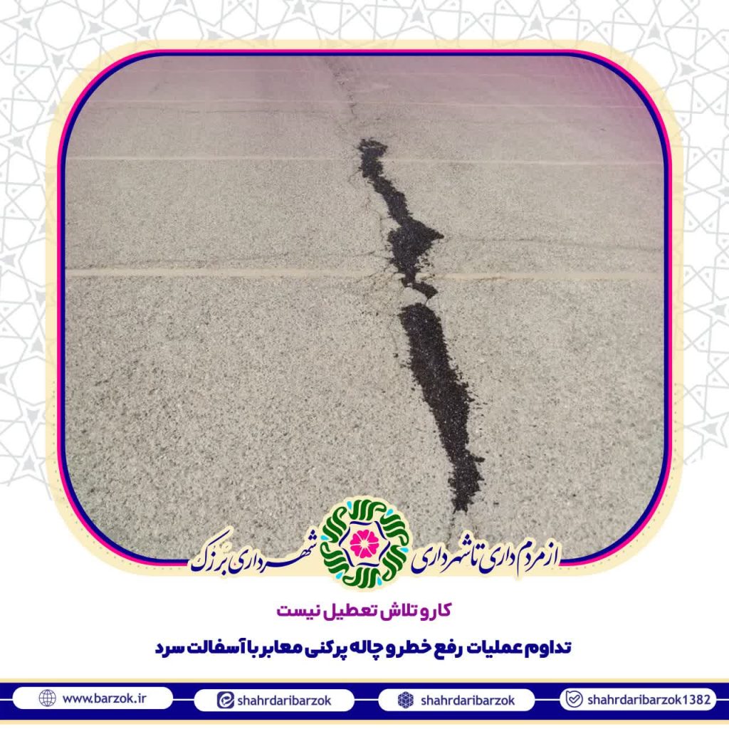 کار و تلاش تعطیل نیست تداوم عملیات رفع خطر و چاله پرکنی معابر با آسفالت سرد