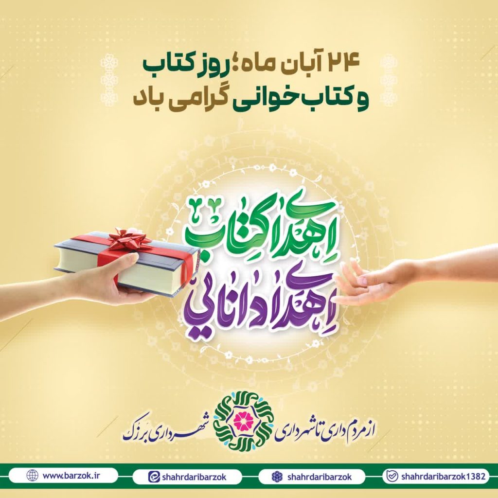 ۲۴ آبان روز کتاب وکتابخوانی گرامی باد. 📚 اهدای کتاب؛ اهدای دانایی #شهرداری_برزک #برزک_نگین_سبز_کوهستان #حمیدرضا_دهقانی #َشهردار_مردمی #از_مردمداری_تا_شهرداری کانال های ارتباطی : [ ایتا ، بله ، روبیکا ، سایت ] روابط عمومی شهرداری برزک