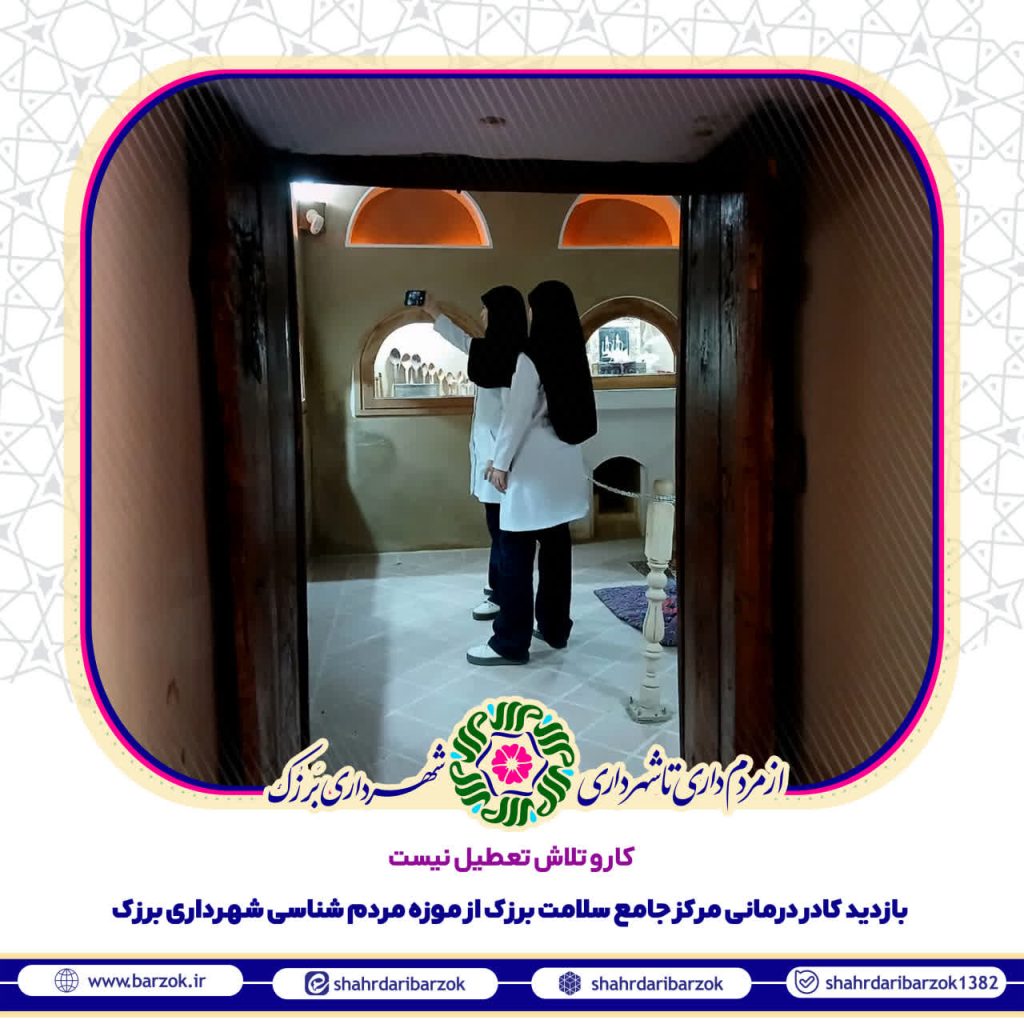کار و تلاش تعطیل نیست بازدید کادر درمانی مرکز جامع سلامت برزک از موزه مردم شناسی شهرداری برزک 📸 ۱۴ مهر ۱۴۰۴ #شهرداری_برزک #برزک_نگین_سبز_کوهستان #برزک_پایتخت_شاتوت_ایران #برزک_پایتخت_عطر_و_گلاب_ایران #برزک_زیبا #حمیدرضا_دهقانی #َشهردار_مردمی #از_مردمداری_تا_شهرداری 🔸 روابط عمومی شهرداری برزک کانال های ارتباطی : [ ایتا ، بله ، روبیکا ، سایت ]