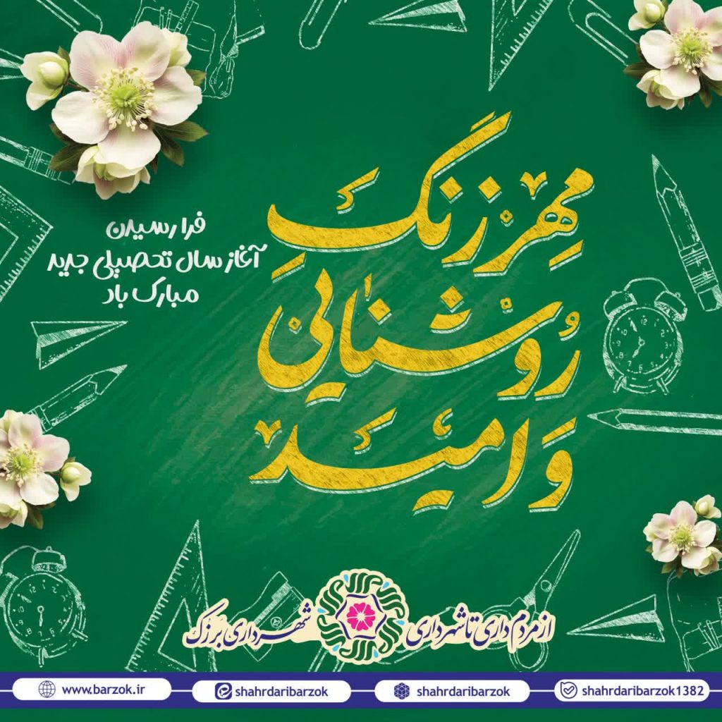 مهر زنگ روشنایی و امید فرا رسیدن آغاز سال تحصیلی جدید مبارک. #شهرداری_برزک #برزک_نگین_سبز_کوهستان #حمیدرضا_دهقانی #َشهردار_مردمی #از_مردمداری_تا_شهرداری کانال های ارتباطی : [ ایتا ، بله ، روبیکا ] روابط عمومی شهرداری برزک